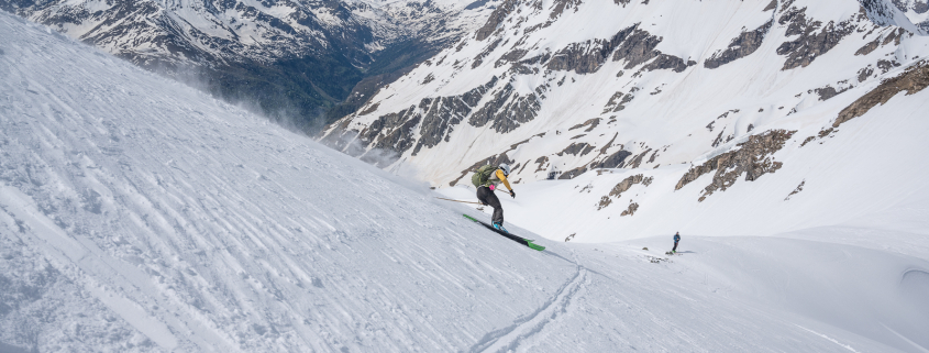 Ob jezeru še enkrat nataknemo kože in hop proti vrhu. S ta velikim Lukom vzpon zaključiva na 2800 metrih nad morjem, ostala dva člana posadka pa nekoliko pod vrhom Brennkogla. Smuka tudi tokrat odlična, saj je flanka s sedla obrnjena še bolj proti zahodu, sonce pa je še ni oplazilo v tolikšni meri.