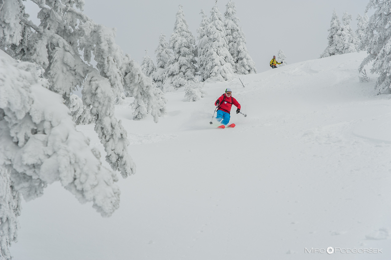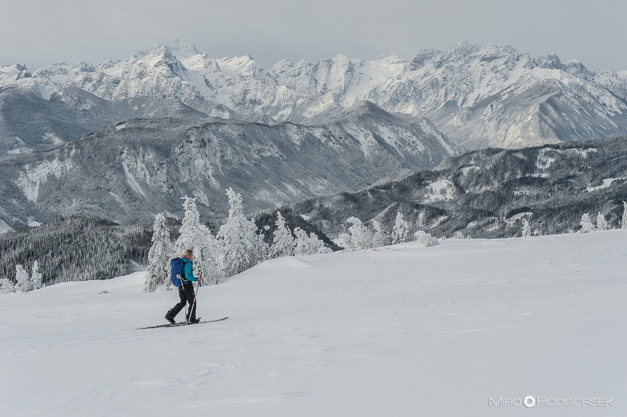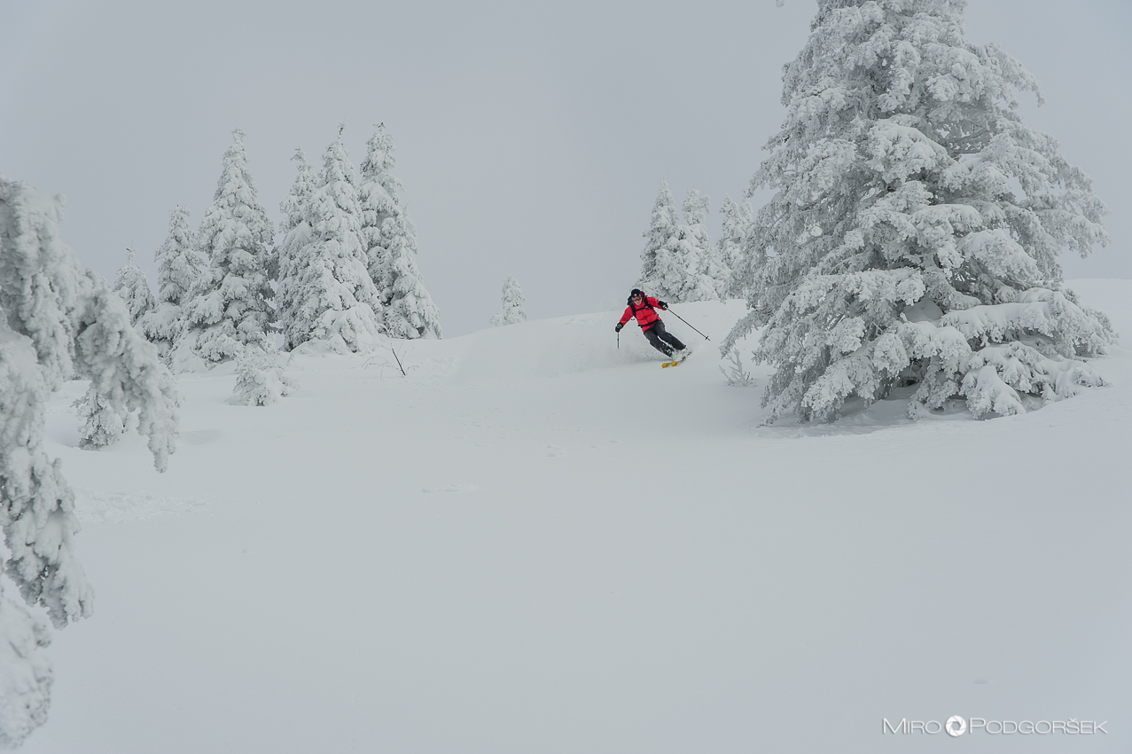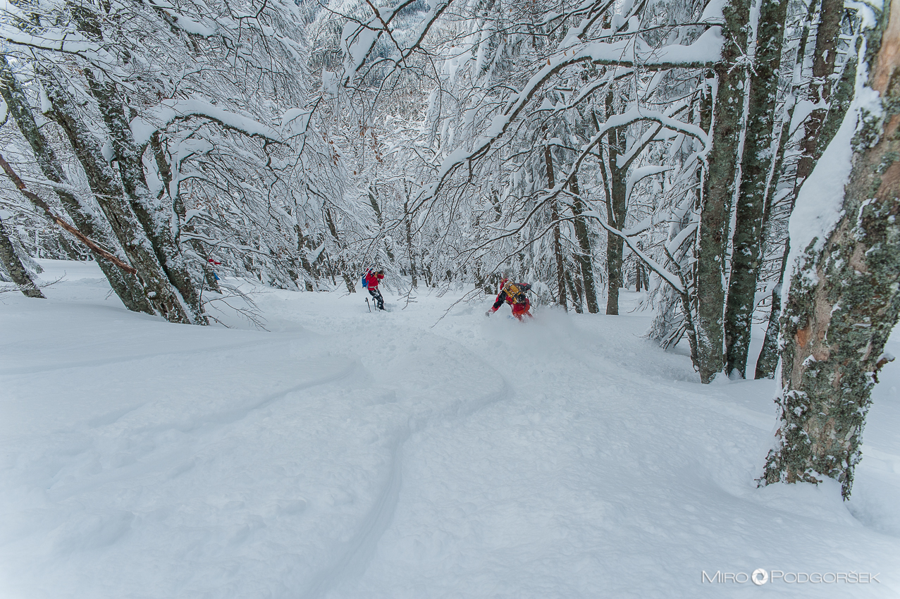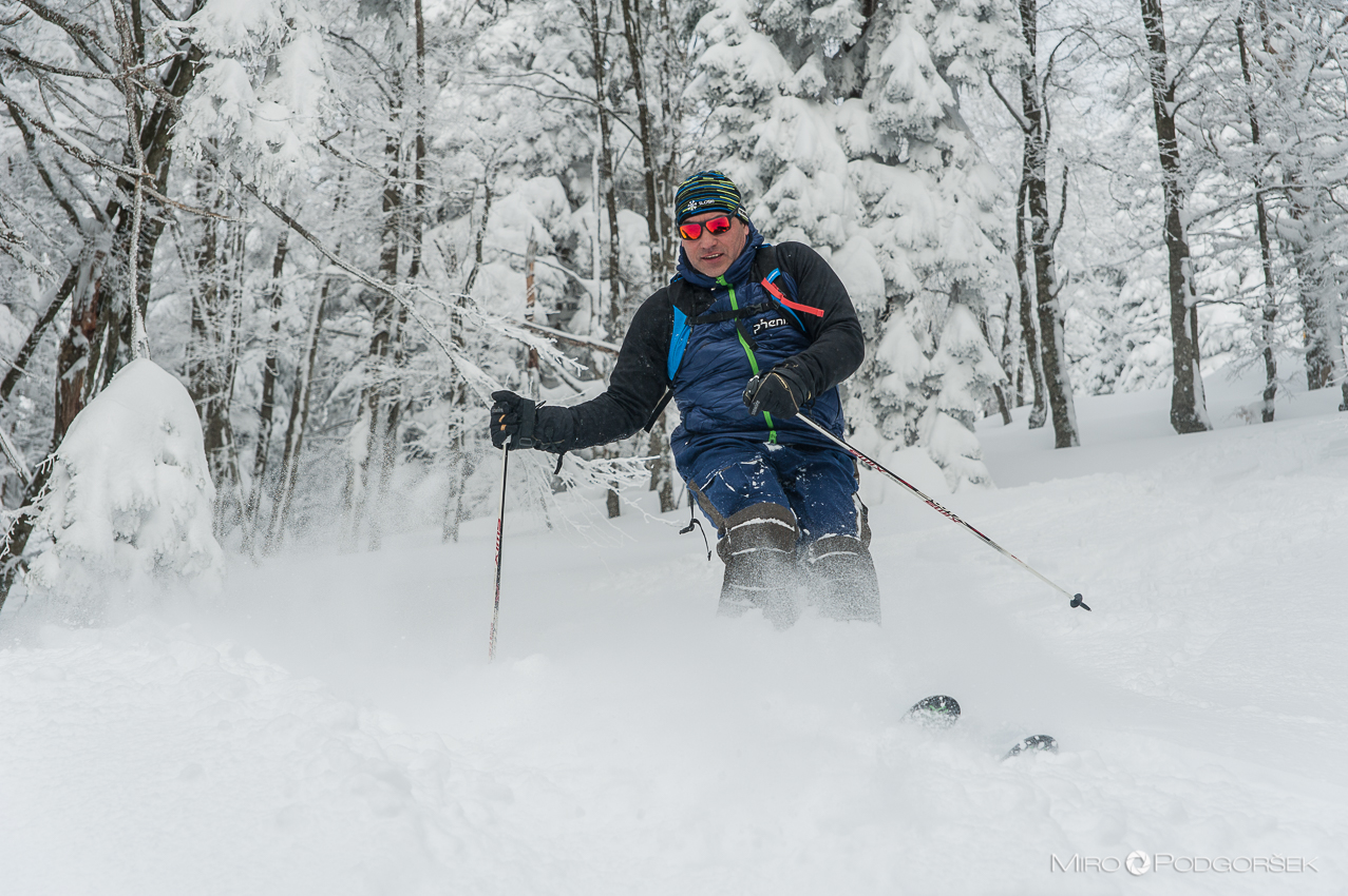 Že v petek sva z Juretom med obilnim sneženjem in gaženjem v Španov vrh premlevala možnosti, kam se podati v nedeljo, da bo tura varna, obenem pa bo nudila dovolj smučarskih užitkov.