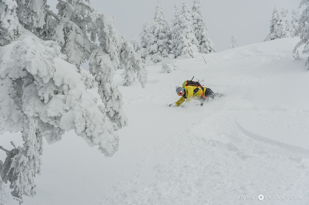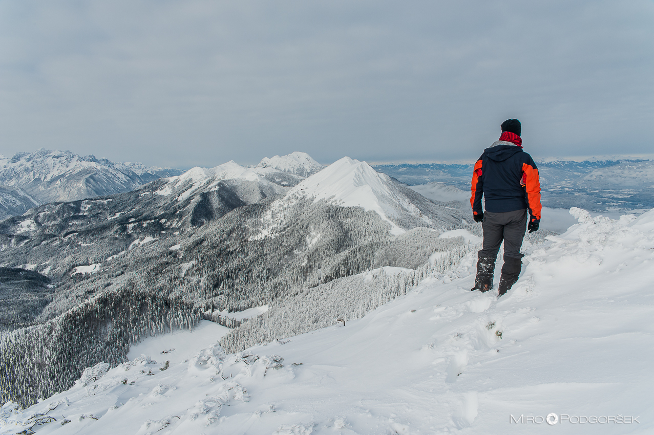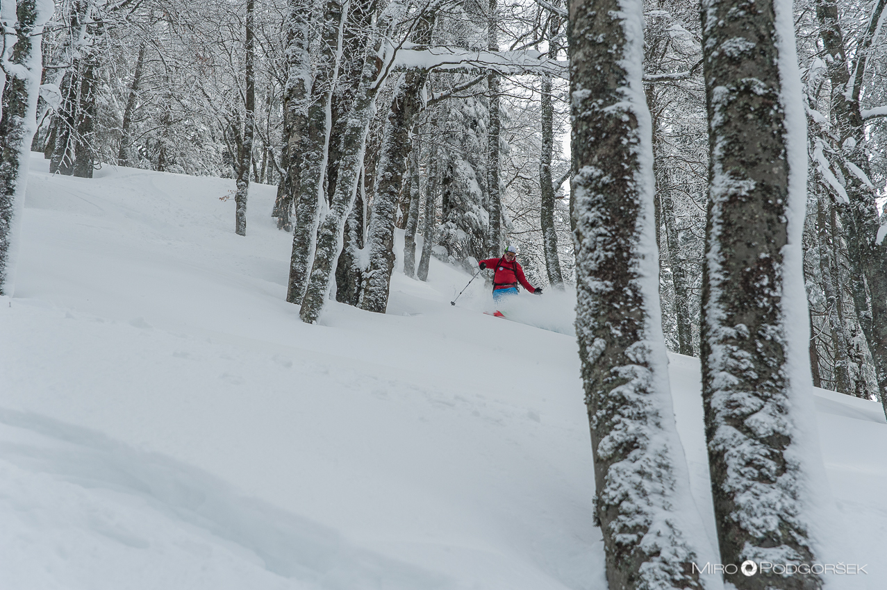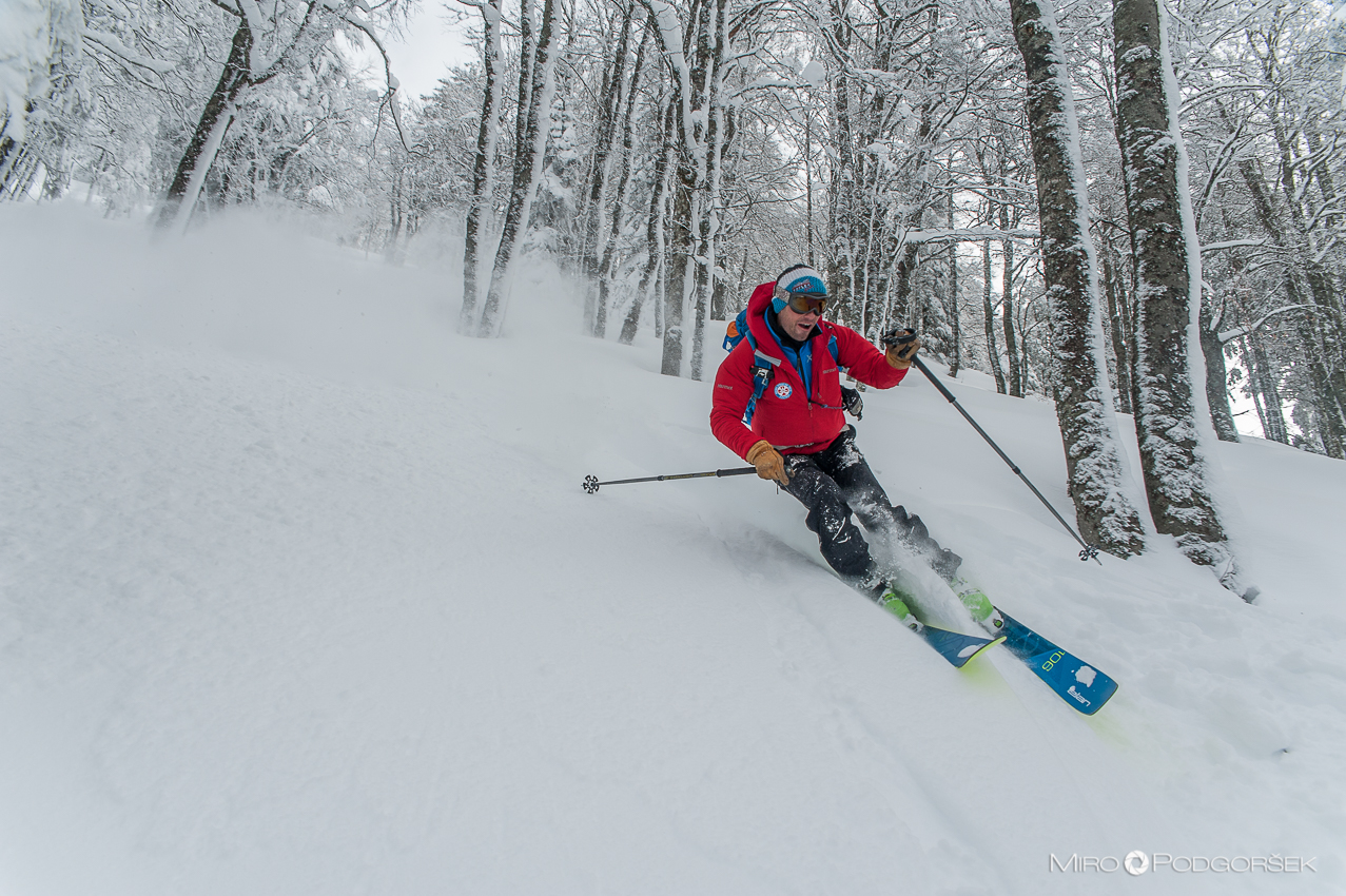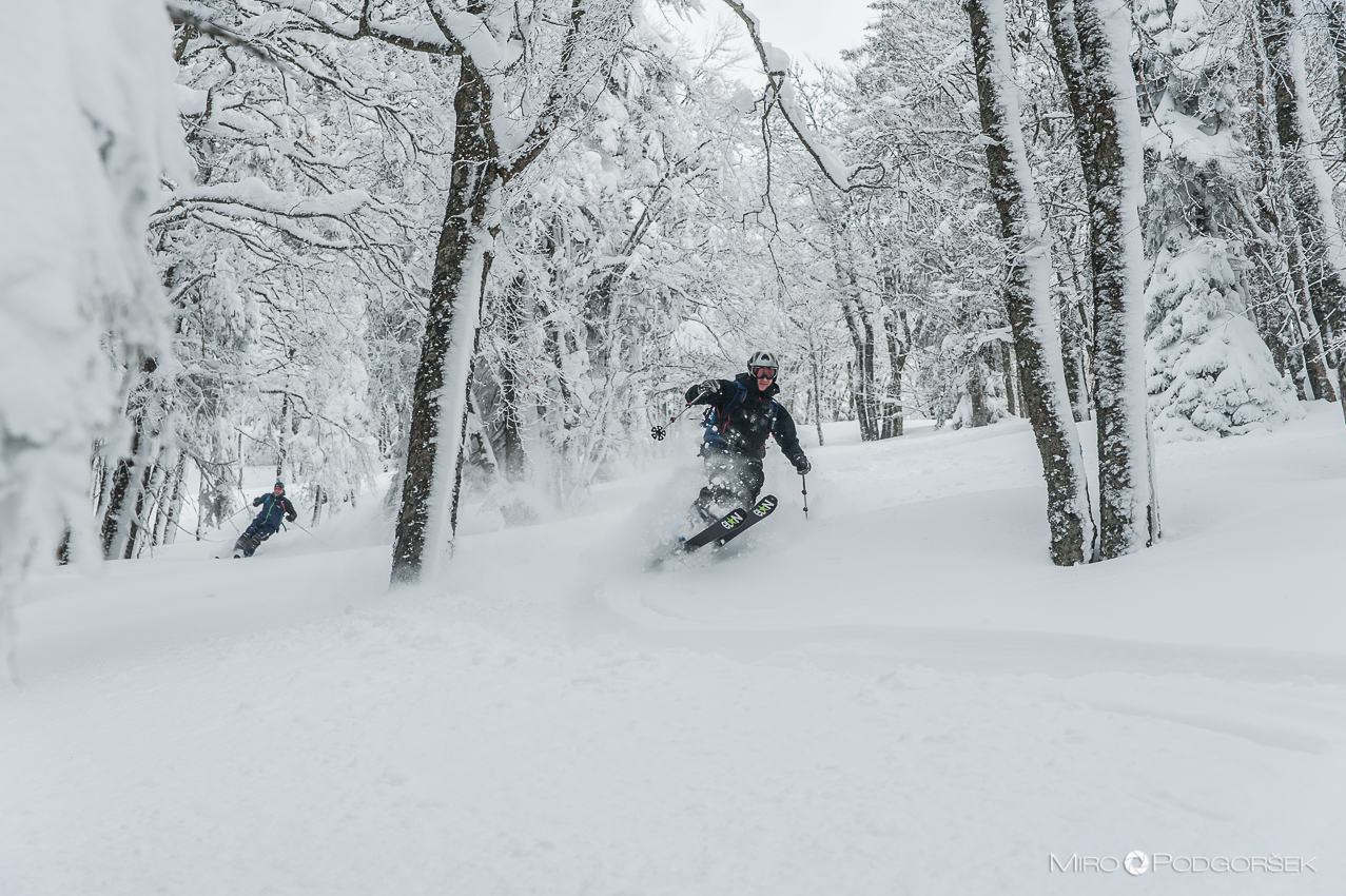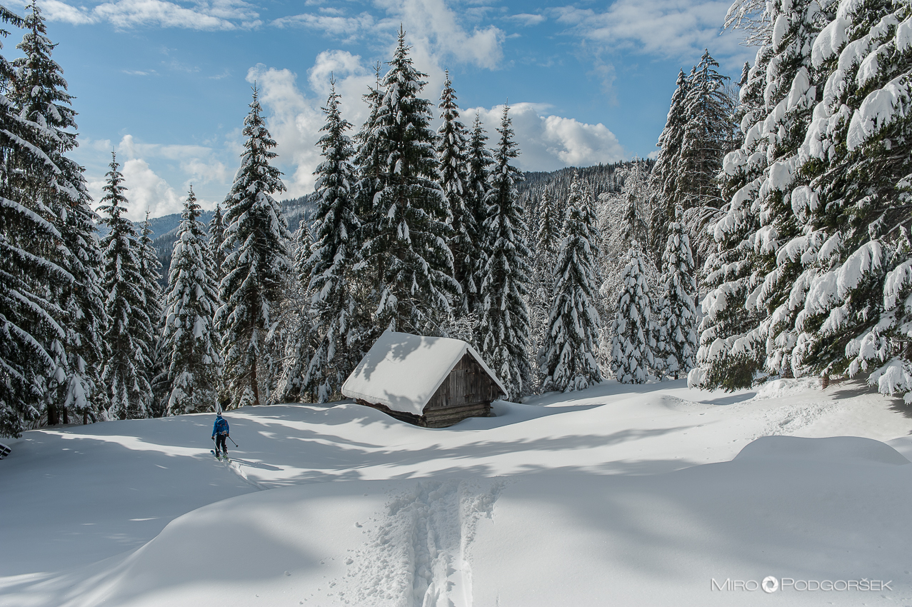 Že v petek sva z Juretom med obilnim sneženjem in gaženjem v Španov vrh premlevala možnosti, kam se podati v nedeljo, da bo tura varna, obenem pa bo nudila dovolj smučarskih užitkov.