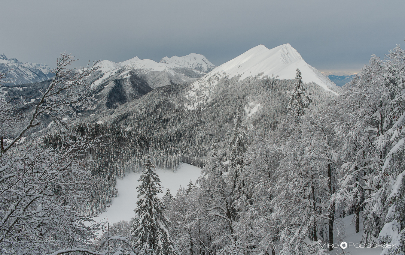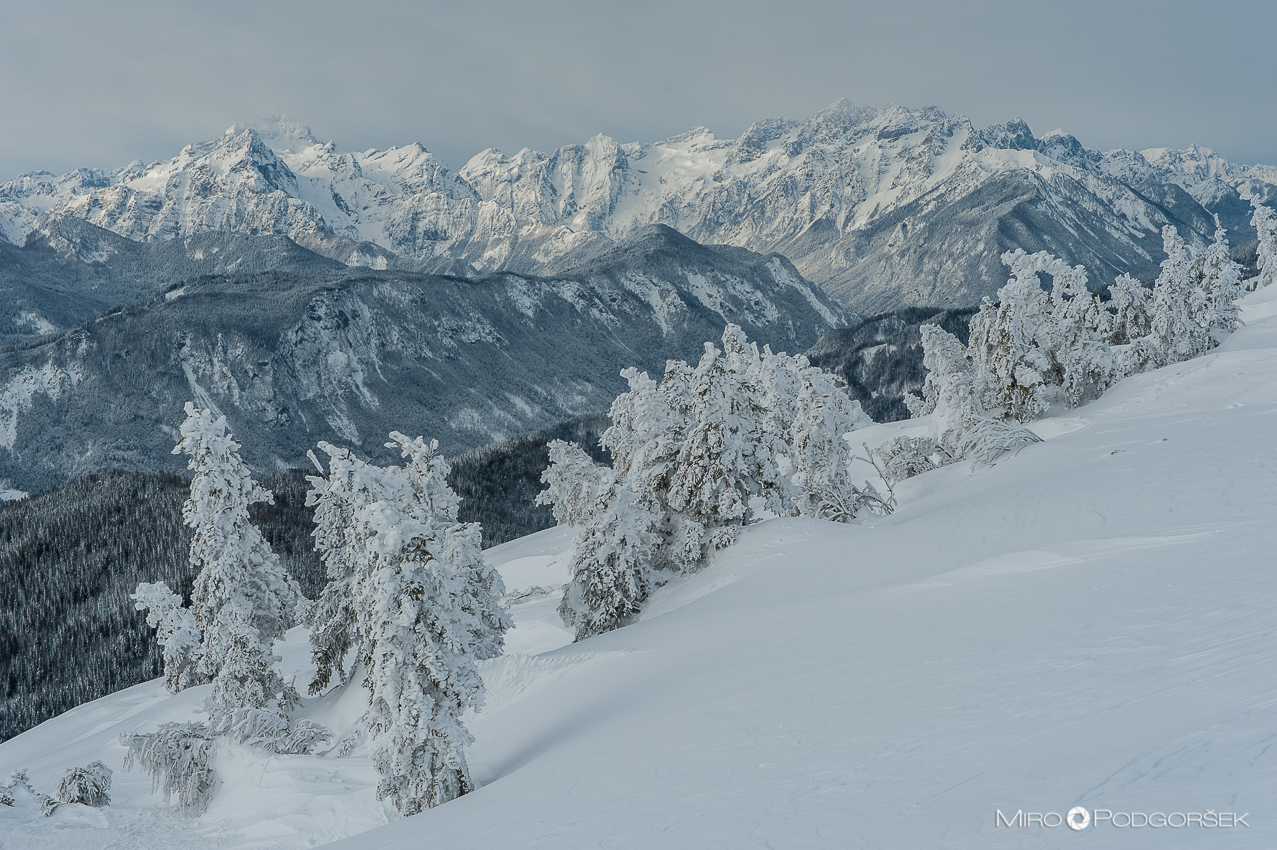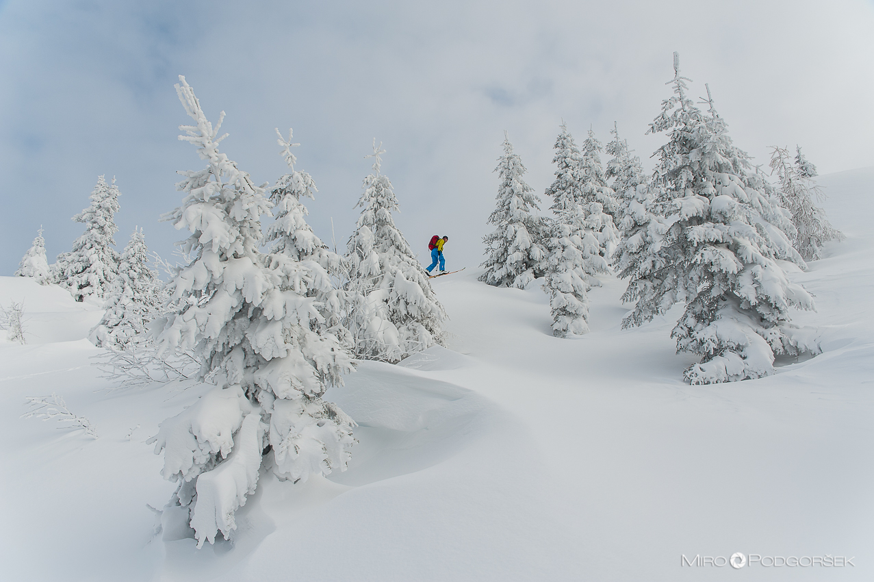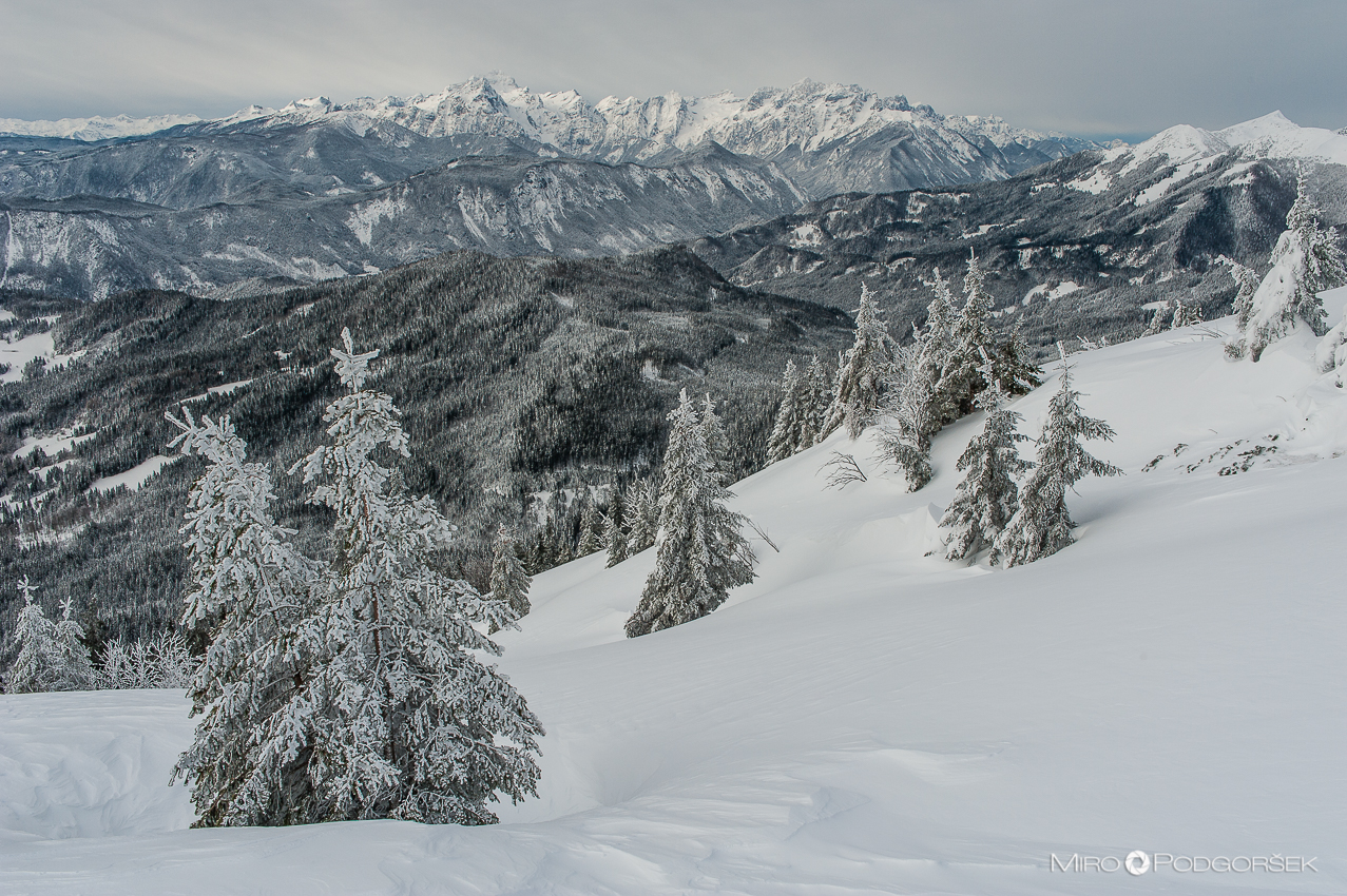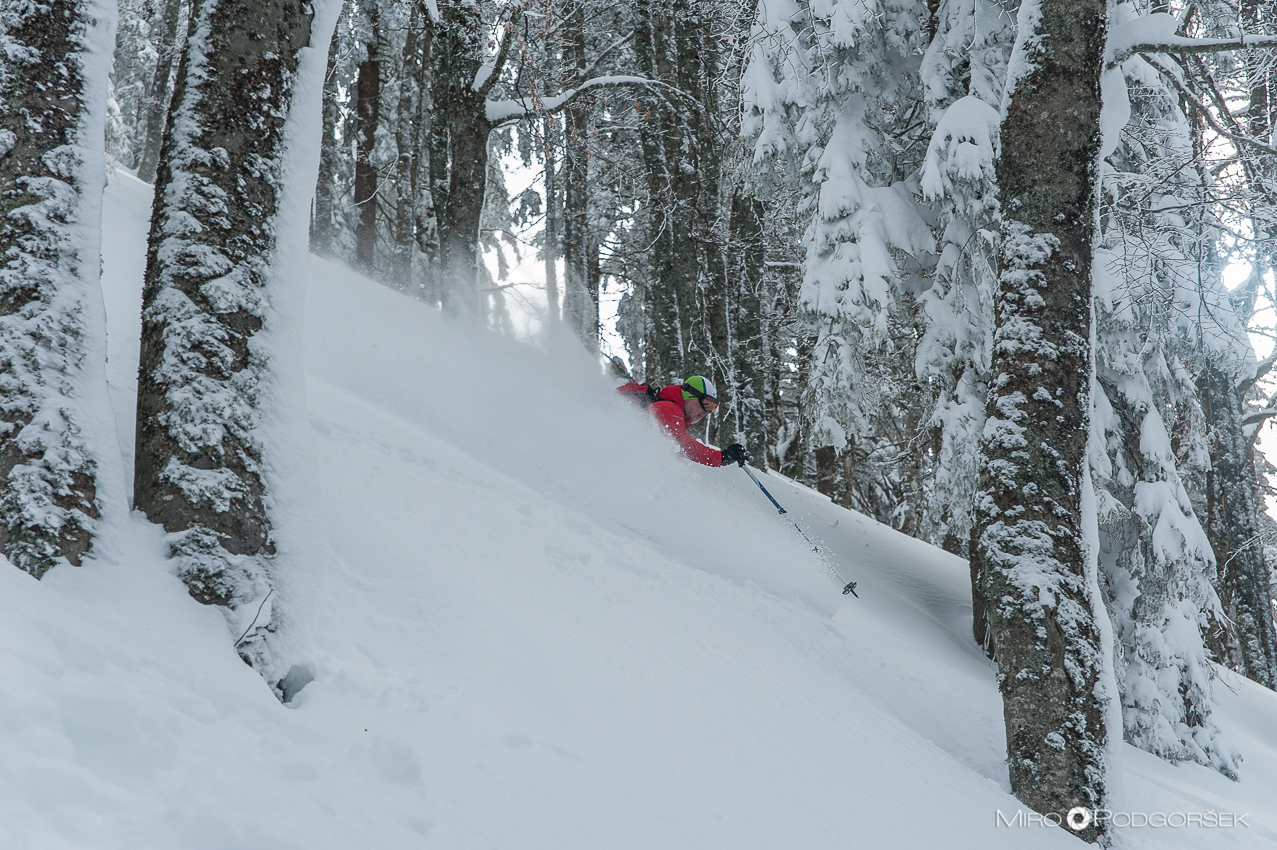 Že v petek sva z Juretom med obilnim sneženjem in gaženjem v Španov vrh premlevala možnosti, kam se podati v nedeljo, da bo tura varna, obenem pa bo nudila dovolj smučarskih užitkov.