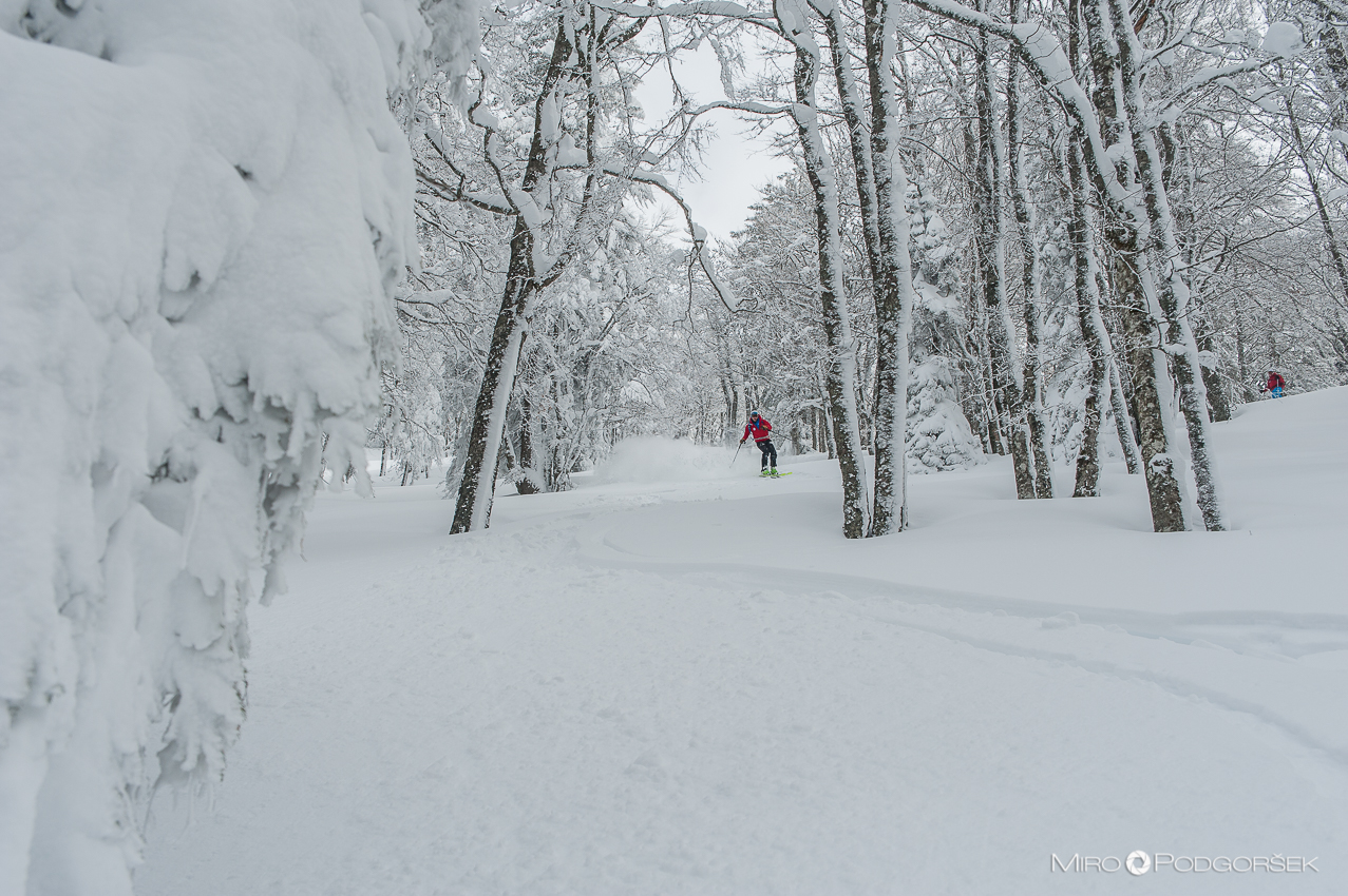 V spodnjem delu snega ni preveč, prav tako se je tudi v zgornji polovici ture že nekoliko sesedel in osušil. Na Korenščici je bilo v preteklih dneh vetrovno, posledica pa je trda vršna površina, ki drži smučarja in po kateri se da uživaško vijugati. Še lepše postane med smrekami, nižje skozi bukov gozd pa smuka postane prava poezija.