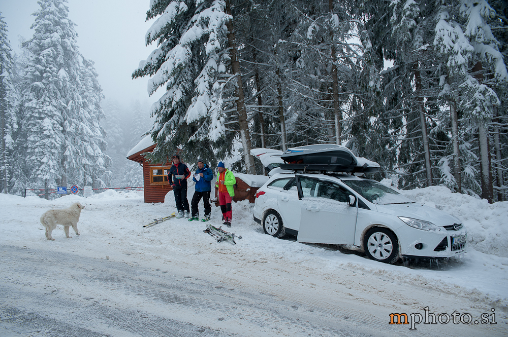 Pod kočo opazimo, da v smer naših flank ta dan obratuje tudi žičnica. Ob debati z žičničarji ugotovimo, da se korupcije precej ogibajo, saj nam ne uspe izposlovati niti ene vožnje z žičnico brez vozovnice po principu “keš na roke”.