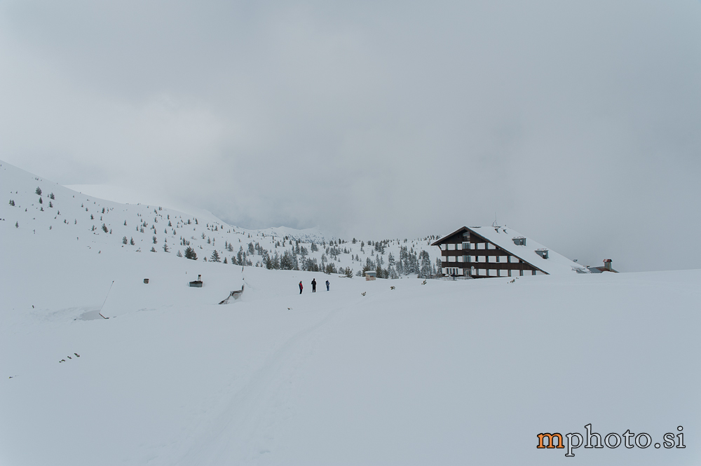 Po okrepčilu v manjši brunarici pred “hotelom” Bezbog si rezerviramo še spanje, nato pa izkoristimo dan za smučanje po hostah ob žičnici.