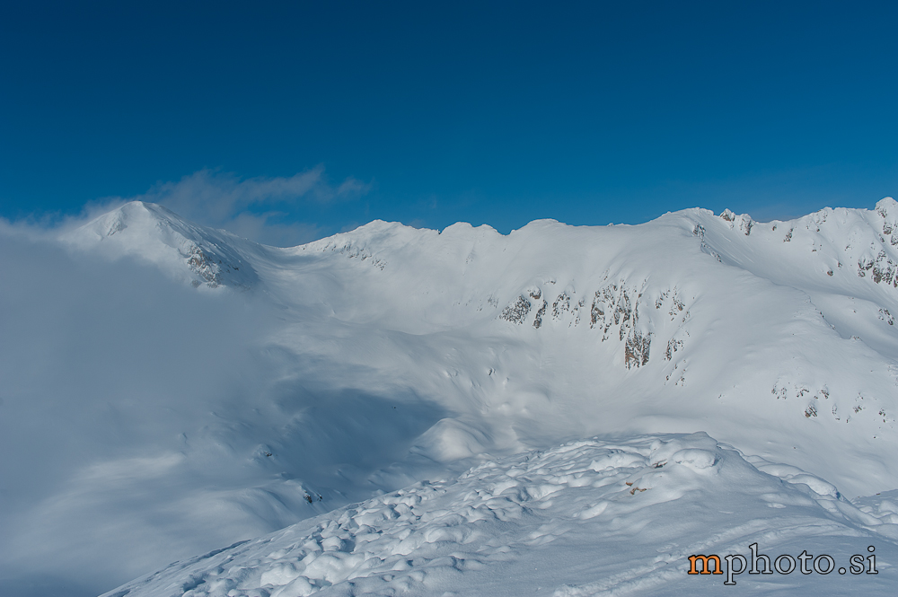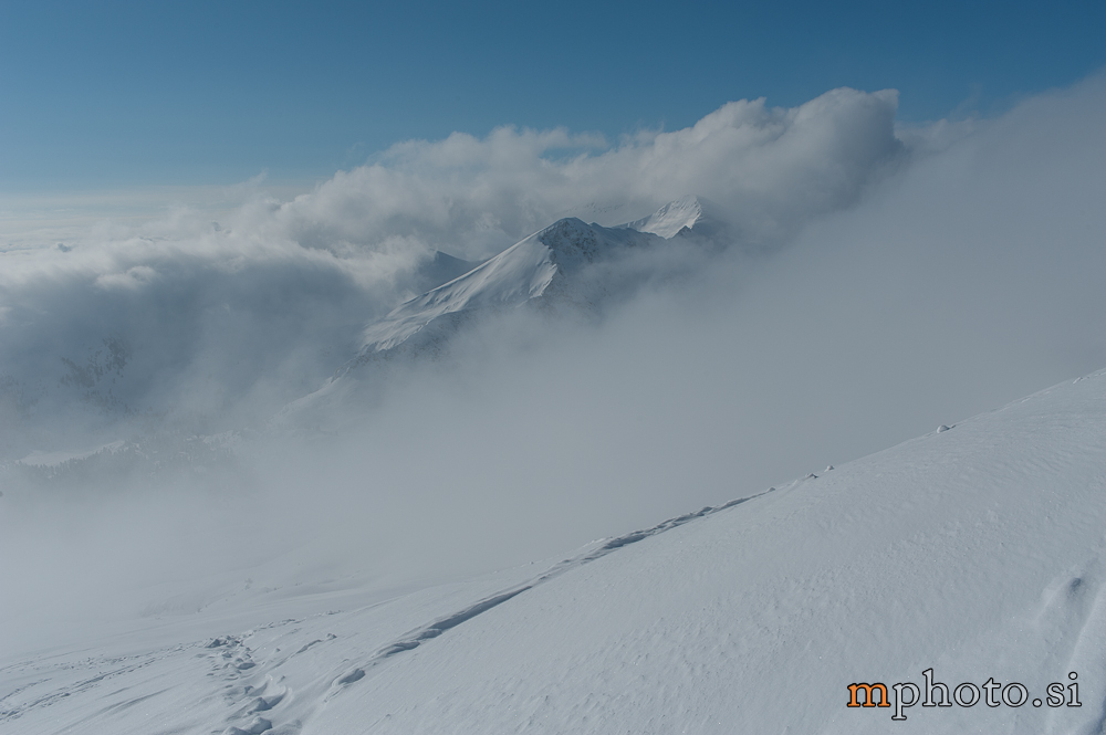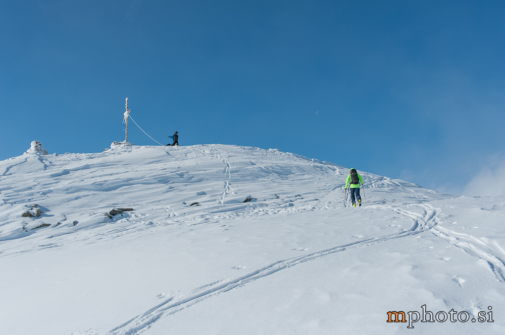 Po občudovanju “razgledov” z vrha se tipaje ob svojih sledeh vzpona spustimo na izravnavo v smeri Bezboga.